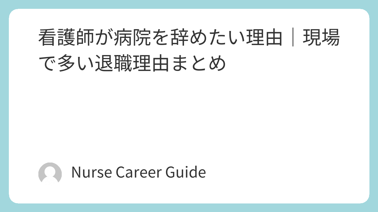 この記事では、現場でよく聞く退職理由や、病院勤務で感じやすい負担についてまとめました。